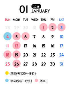 2026年年始は1月4日(日曜)からの営業とさせて頂きます。
